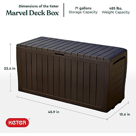 $48.63*: 71-Gal Keter Marvel Outdoor Storage Resin Deck Box (Brown or Graphite) at Amazon