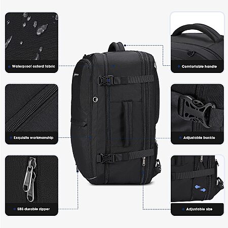 $21.63*:Maelstrom 40-50L Carry-on Travel Backpack, 17.3" TSA Approved Expandable Laptop Bag with Shoe Compartment – Black
