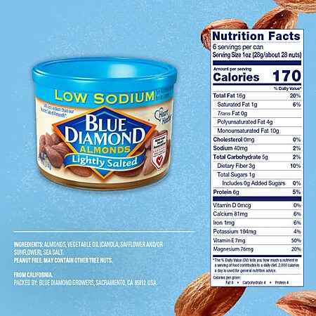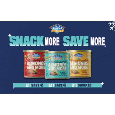 Three Cans of BLUE DIAMOND 6oz Almonds $10.45-$11 Shipped w/PRIME, get a $10 Rebate From Blue Diamond