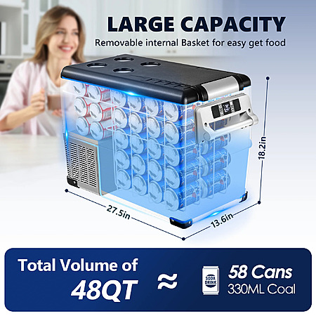 SIMZLIFE 12V Electric Car Refrigerator, 48QT RV Freezer Fridge, DC & AC - Home, Travel, Camping, Outdoor - Gray $169.99