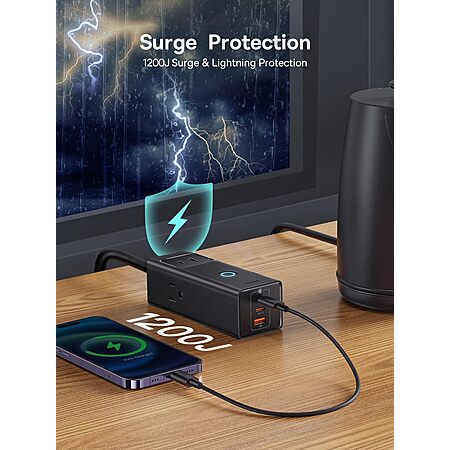 - Reliable Surge & Lightning Protection: Baseus USB C charger block with upgraded 1200J surge protection safety measures effectively eliminates sudden power surges or "spikes." The 20W Baseus power strip can protect you and your devices from short circuits, overpower problems & other safety issues.