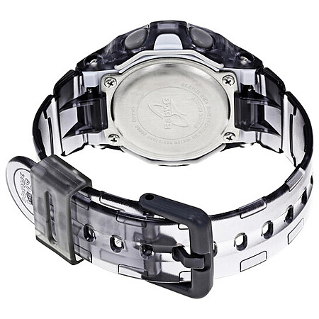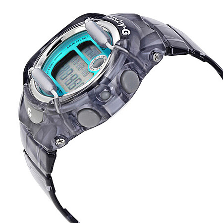 | Product Description: | Grey transparent resin case with a grey transparent resin strap. Fixed grey resin bezel. Blue digital dial. Hours, minutes, seconds, date and day of the week. Dial Type: digital. Full-auto calendar. Casio Calibre 3252 quartz movement. Scratch resistant mineral crystal. Solid case back. Round case shape, case size: 42.6 mm, case thickness: 15.4 mm. Band width: 20 mm. Tang clasp. Water resistant at 200 meters / 660 feet. Functions: hour, minute, second, el backlight (afterglow), world time (29 timezones), day counter, 5 daily alarms, hourly time signal, stopwatch, countdown timer, 12/24 hour formats. Sport watch style. Casio Grey Transparent Resin Ladies Watch BG169R-8B. |