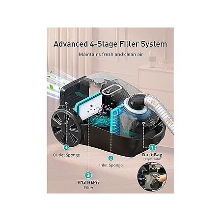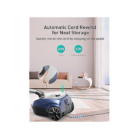 $69.99*:(NEW!) Aspiron Canister Vacuum Cleaner, 1300W Bagged Canister Vacuum, Turbo Brush, 5 Tools, 3.7Qt, H13 HEPA Filter, Automatic Cord Rewind