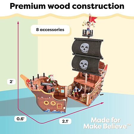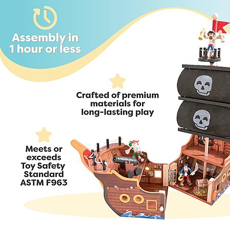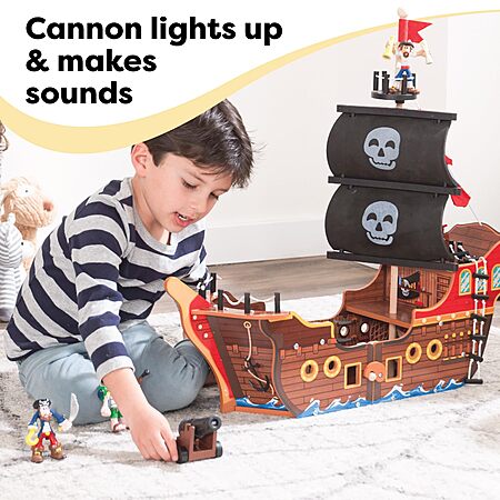 $40.91*:KidKraft Adventure Bound™: Wooden Pirate Ship Play Set with Lights and Sounds, Pirate Figures, 8 Pieces Included, Gift for Ages 3+