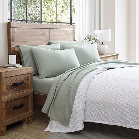 6-Piece Tahari Home Microfiber Queen Bed Sheet Set w/ Pillowcases (Solid Desert Sage)