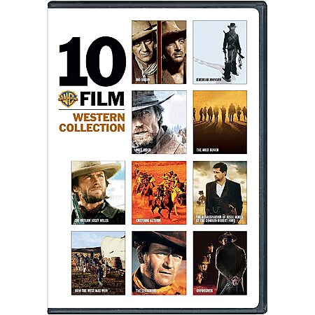 A film collection containing ten of the best Warner Bros. Western movies: The Searchers, Rio Bravo, How the West Was Won, The Wild Bunch, Jeremiah Johnson, The Outlaw Josey Wales, Pale Rider, Unforgiven, Cheyenne Autumn, The Assassination of Jesse James by the Coward Robert Ford.