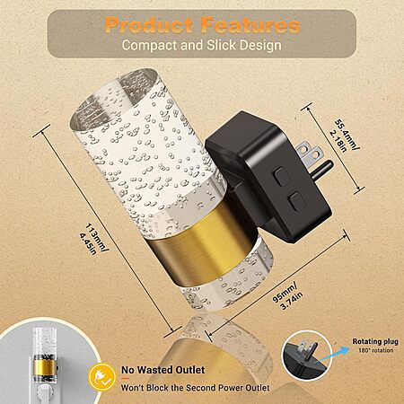 2-Pack JandCase Dimmable Plug-In Night Lights w/ Light Sensor (Gold, 3000K) $12.49, (Gold Metal 3000K) $15.99 & More + Free Shipping w/ Prime or on $35+