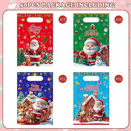 50 Pcs Merry Christmas Gift Bags with Handles, 4 Style - $4.99