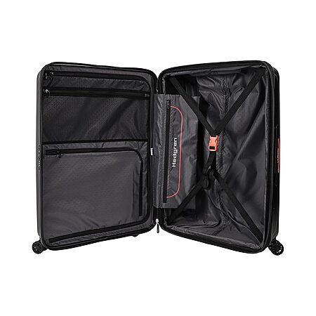 Explore the world carrying your all essentials inside Hedgren™ Grip Large Expandable Spinner. The main compartment is expandable. The luggage is made of polycarbonate recycled fabric and biggest case in the range is perfect for long-haul trips. A silent spinner wheels make running through airports or train stations a breeze. A security TSA lock and double-coil zipper closure keeps the things safe. The sandblast shell texture gives a sophisticated edge, and bold colour accents add a pop of fun. Gunmetal hardware completes the look beautifully.