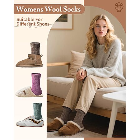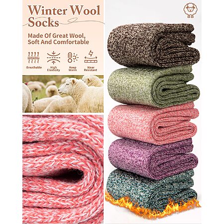 5-Pack YSense Women's Wool Socks (Brown Pink Purple Blue Green Green) $6.49 + Free Shipping w/ Prime or on $35+
