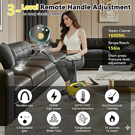 Slpgarimahqe 3 Level Adjustable Pressurized Handheld Steam Cleaner for Home, 1.6 Qt Tank Portable Steam Cleaner Handheld for Car,Grout,Tile,Couch,Floor $10.99