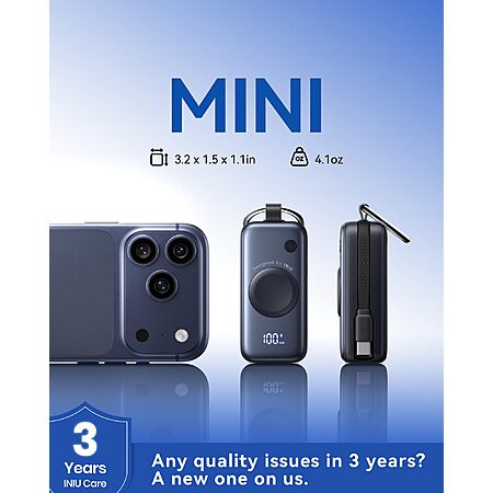 INIU Portable Charger, 5000mAh 20W External Phone Battery Pack, PD Fast Charging $11.46