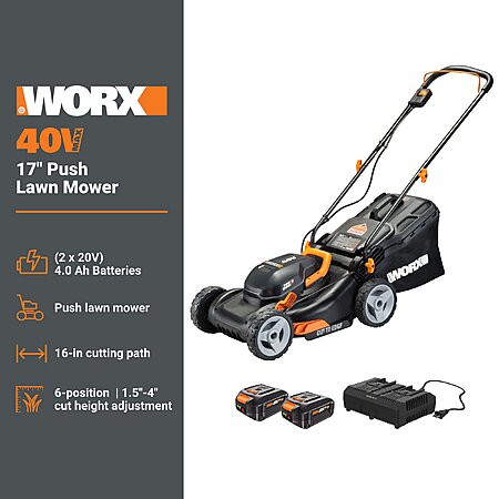 17" WORX 40V Cordless Lawn Mower w/ 2 Batteries & Charger (WG743) for $159. - Lowes, BestBuy, Target, AliExpress ($133)
