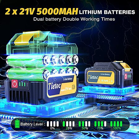 $39.99*: Tietoc 1200W Brushless Leaf Blower w/ 2x 5Ah Batteries & Charger at Amazon
