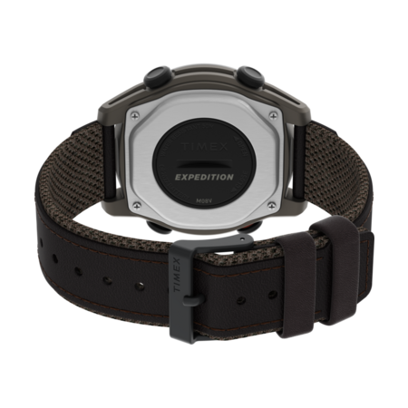 An outdoor ready smartwatch, our new Expedition Trailblazer+ with daily activity tracking and easy-touch, on-wrist heart rate monitoring is as adventurous as you are. It's packed with a countdown timer, chronograph, customizable alarm, and INDIGLO® backlight with a water resistant rating up to 50 meters. Featuring a substantial 43mm case size and Italian leather on the straps, this watch is a practical and durable companion, offering a casual look with a functional battery hatch so you can make the swap yourself as needed.