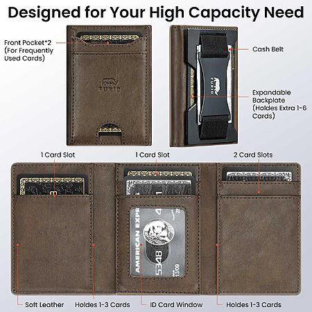furid Men's Leather RFID Trifold Wallet w/ Cash Belt $7.49 + Free Shipping w/ Prime or on $35+