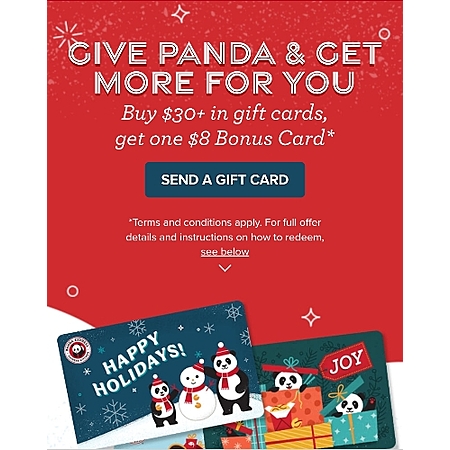 $30 Panda Express Gift Cards + $8 Bonus Panda Express Promo Card