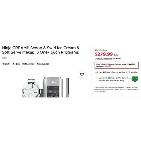 If you are a Kohl's Card holder, applying coupon code (Kohl's Card Exclusive: Take an extra 15% off all Ninja products) results in price of