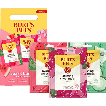 3 pack Burt's Bees Christmas Gifts - Face Mask Bundle Set, Hydrating Watermelon, Calming Rose, & Refreshing Cucumber, $7.31, Amazon