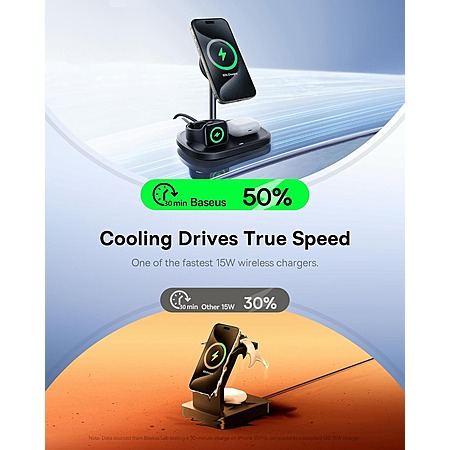 Baseus Brand Store via amazon [amazon.com] has for Prime Members Baseus 3 in 1 Qi2 15W Wireless Charger Stand with TEC Active Cooling on sale for