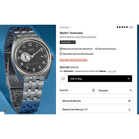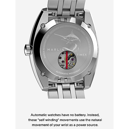 The Marlin Automatic Sub-Dial brings a modern-retro update to our 1960s Marlin. Now with a stainless-steel bracelet, its sleek design has a contemporary style that's sharp enough for any outing. While its full Arabic dial and date feature stay true to our much-loved Marlin automatics, this timepiece brings sophisticated details like a 24-hour format sub-dial at the 9 o'clock position and a stianless-steel case in a curved cushion shape. The Miyota Japanese automatic movement is showcased through an exhibition case back which bears the Marlin name and a detailed etching of the iconic marlin fish. The full Marlin name also graces the dial and crown to honor not only our watchmaking legacy, but the ever-evolving style of this suave '60s icon.