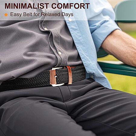 - Buckle-free belt pairs with jeans, streetwear, or golf looks