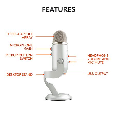 Logitech Creators Blue Yeti USB Microphone for Gaming, Streaming, Podcast, YouTube, Discord, PC, Studio Sound, Plug & Play-Silver $84.97