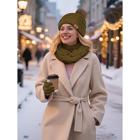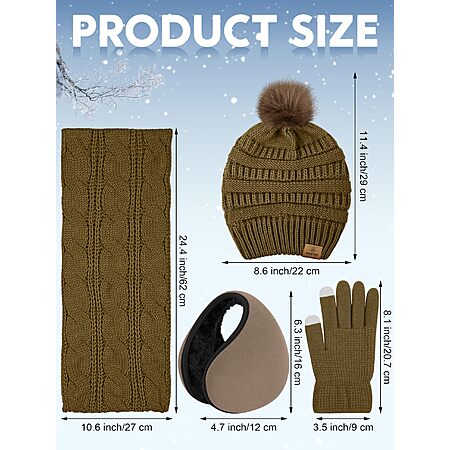 URATOT Winter Warm Sets Knitted Scarf Beanie Pompom Hat Touch Screen Gloves and Winter Ear Warmer Set (various colors) - from $9.99