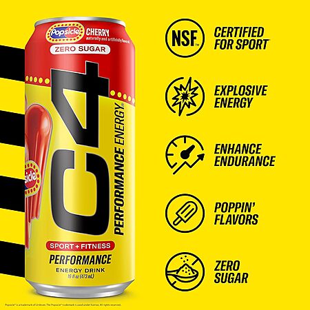 Cellucor C4 Energy Drink Cherry, Carbonated Sugar Free Pre Workout Performance Drink with no Artificial Colors or Dyes, 16 Oz, Pack of 12 $10.86 @ Amazon