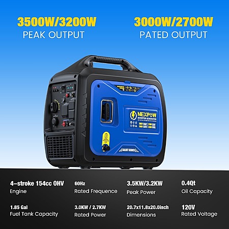 NEXPOW 3500W/3200W Dual Fuel Portable Inverter Generator on sale for for $349.99 - $40 clip coupon on product page - $50 w/ promo code