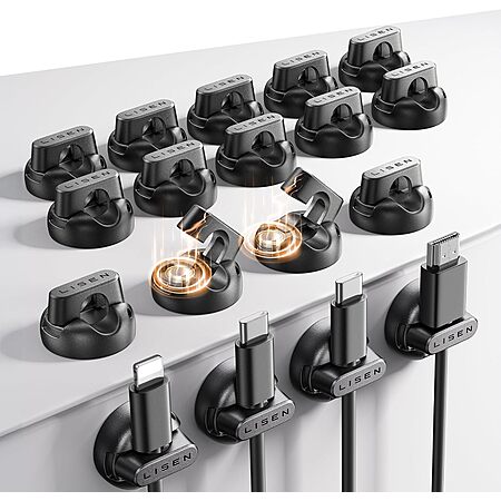 8-Pack LISEN Adhesive Magnetic Cable Clip Organizers (various colors)