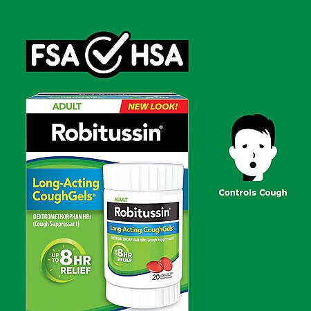 Robitussin 8 Hour Liqui-gels Cough, Adult Formula, 20 Count + $2.50 Walmart Cash $6.48