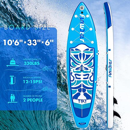 10'6" FunWater Inflatable Stand Up Paddle Board w/ Premium SUP Accessories (Red/Blue) for $199.95 - $30 when you clip the coupon on the product page - 49% when you