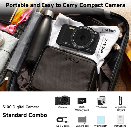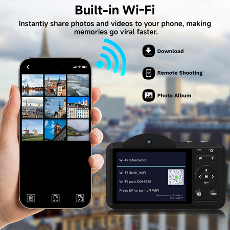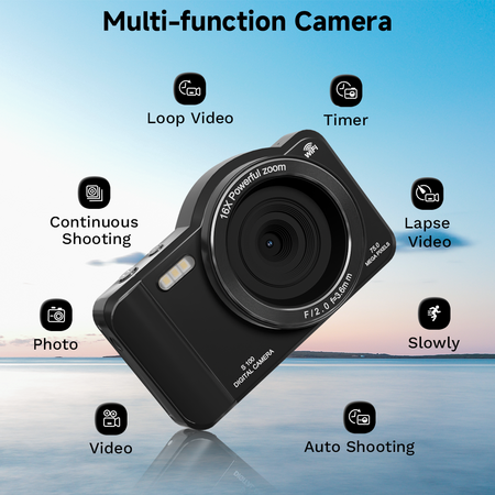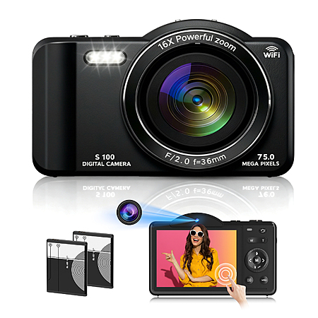 Digital Camera, 4K WiFi 75MP Compact Camera with Touchscreen 16X Zoom, Autofocus Vlogging Travel Camera, 32GB SD Card for Teens Boys Girls Beginners (Black) $49.99