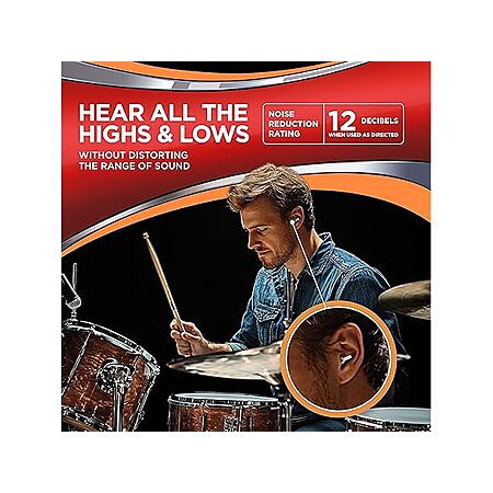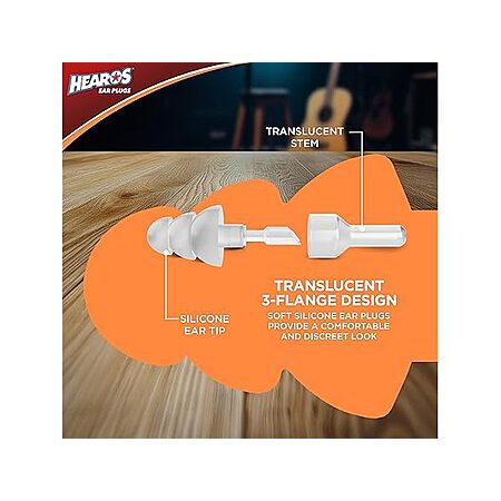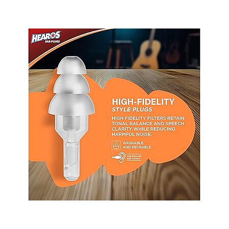 $3.99*:HEAROS High Fidelity Series Ear Plugs with Free Case, NRR 12, 1 Pair, Silicone, Hypoallergenic, Clear (311)