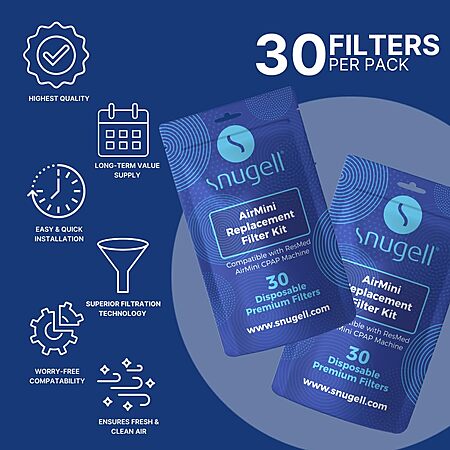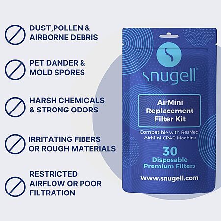 Snugell AirMini CPAP Filter – Compatible with ResMed AirMini Machines – 30 Count (Pack of 1) $4