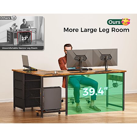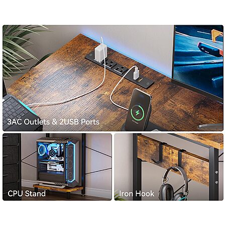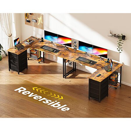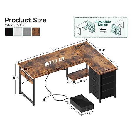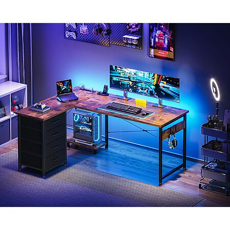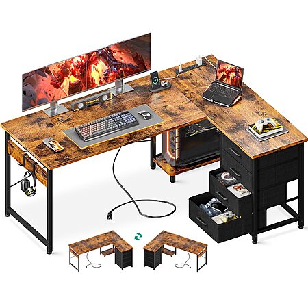 L Shaped Desk with 4 Tier Drawers, 53" Gaming Desk with Power Outlets & USB, Reversible L-Shaped Computer Desk with CPU Stand, Home Office Corner Desk with Storage $61.74