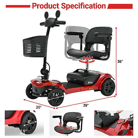 Segmart 4-Wheel 300W Electric Compact Mobility Scooter w/ 15 Mile Range & USB Phone Port (Red or Blue) $386 + Free Shipping