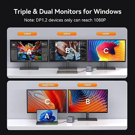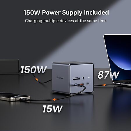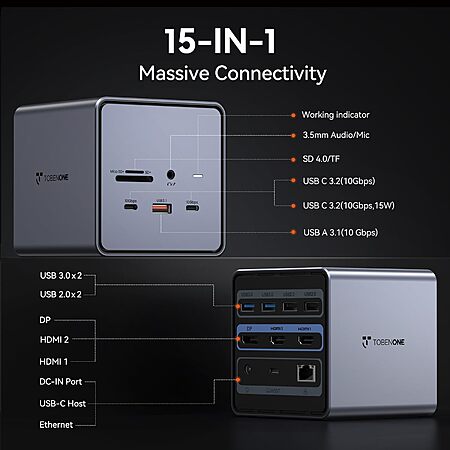 TobenONE USB C Docking Station Dual/Triple Monitors with 150W Power Adapter for Dell/HP/Lenovo/Surface/Asus/Chromebook, 2 HDMI, DP, 5 USB, Ethernet, SD 4.0/Micro SD $128.99