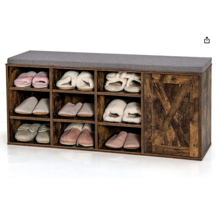 Giantex 9 Cube Adjustable Shelves Shoe Bench with Cabinet & Removable Padded Cushion $54 + Free Shipping