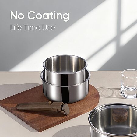 CAROTE Tri-Ply Stainless Steel Sauce Pan with Detachable Handle,1.5QT Sauce Pan,2QT & 3QT Saucepan with Lid, 8PCS, $25.99