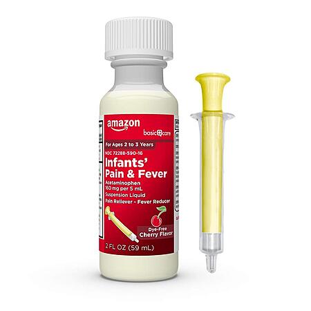 Amazon Basic Care Infants' Pain & Fever, Acetaminophen 160 mg per 5 mL, Suspension Liquid, Dye-Free Cherry Flavor, 2 fl oz $2.50 S&S Amazon