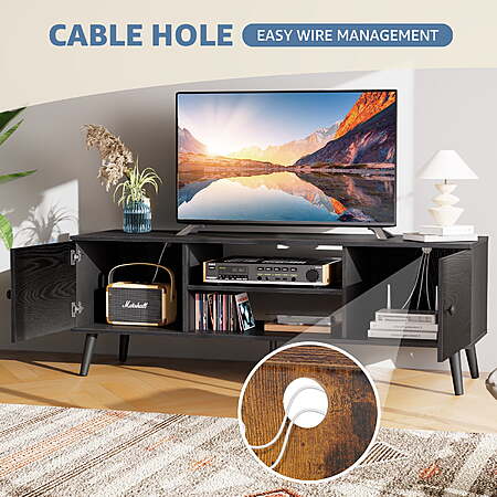 edx Modern TV Stand for 55-60 inch TV, Mid Century Entertainment Centre, Media Console Table with Storage for Living Room, Office, Brown $53.89