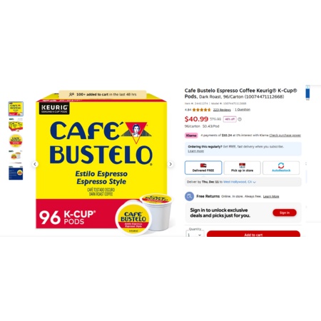 Cafe Bustelo 96 K-Cups for $40.99 (46% off)