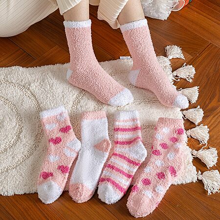 5-Pack - Passionbility Slipper Socks Women - Colorful Warm Fuzzy Crew Socks (various designs) - $5.99