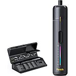 * Convenient Storage and Comprehensive Accessories: A sleek and tech-inspired integrated storage case features a magnetic design for easy access to bits. It comes with 20 commonly used bits (5 long, 15 short), an extension rod, and a 90° angle adapter, ensuring versatility for various home tasks, even in tight spaces.
