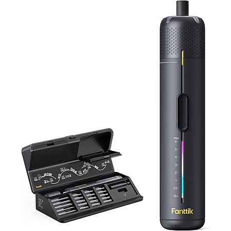 Fanttik S2 Pro Electric Screwdriver, Cordless Screwdriver Set, 7 Torque Settings, 0.5 to 6N.m, 20 Magnetic Bits, 1/4''Hex Shank, with 90° Angle Adapter, for Furniture, Household Repairs