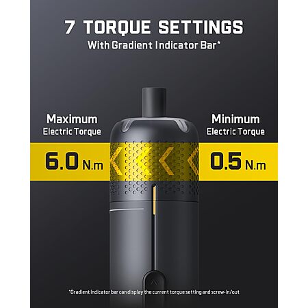 * Precision Torque Control: Utilizing a mechanical-electronic hybrid torque control system, it offers 7 adjustable torque settings (0.5, 1, 2, 3, 4, 5, 6N·m), ensuring smooth power adjustments. The lowest setting (0.5N·m) is ideal for delicate electronic repairs.