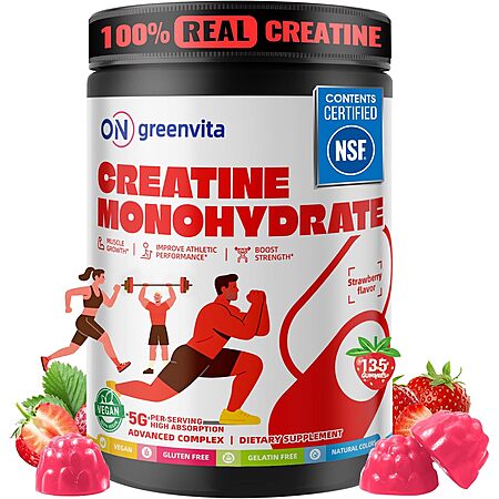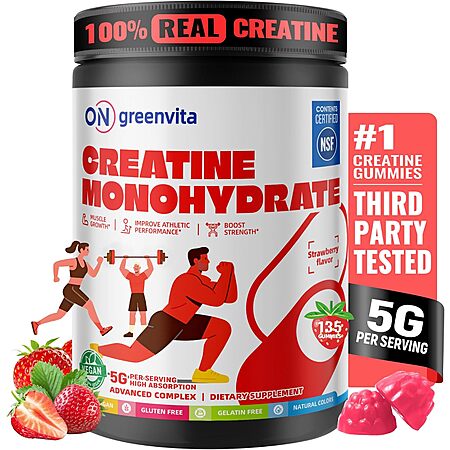 GreenVita 5,000mg Creatine Monohydrate Gummies 135-Count Bottle $14.99