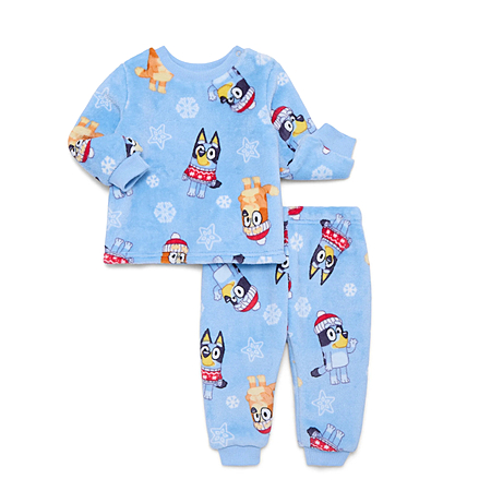 Model: Christmas Bluey Unisex Baby Print Plush Top and Pants Set, 2-Piece, Sizes Newborn-24M